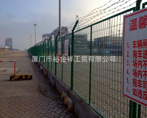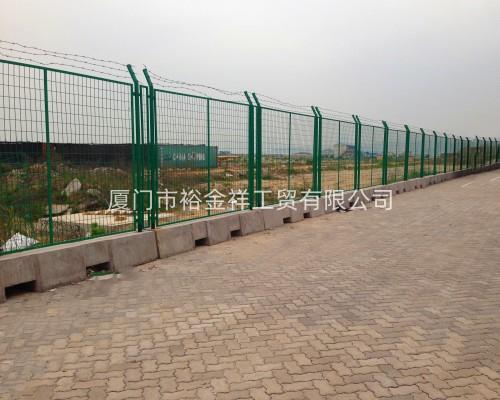 機(jī)場(chǎng)隔離柵又稱作“機(jī)場(chǎng)護(hù)欄”、“Y型安全防御護(hù)網(wǎng)”,它是由V型支架立拄,加強(qiáng)型焊接片網(wǎng),安全防盜連接件和熱鍍鋅刀片刺籠組成是強(qiáng)度和安全防御性級(jí)別很高的隔離柵產(chǎn)品。機(jī)場(chǎng)隔離柵可以采用電鍍、熱鍍、噴塑、浸塑等防腐形式,具有很好的抗老化、抗曬、耐候等特點(diǎn)。其產(chǎn)品造型美觀、花色多樣,既起到圍欄作用,又起到美化作用。